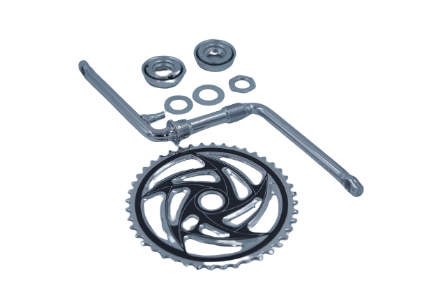 จานโซ่ 32T กะโหลกเหลียม มีบังจาน สีชุบโครเมี่ยม ขายาว 165mm
