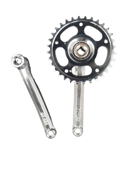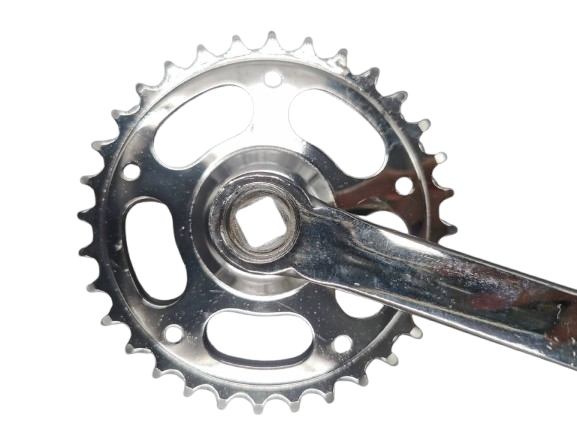 จานโซ่ 32T กะโหลกเหลียม มีบังจาน สีชุบโครเมี่ยม ขายาว 165mm